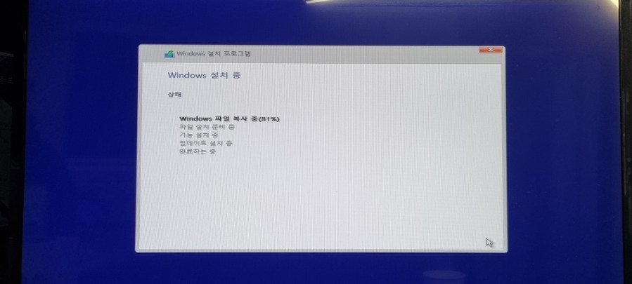 방문하여보니 기존에 쓰던 윈도우는, 윈도우7이었고 아마 윈도우 환경에서 설치용 부팅 USB를 꽂고 업그레이드를 하는 형태로 설치를 시도하시지 않았나 하는 생각이 들렀습니다.
